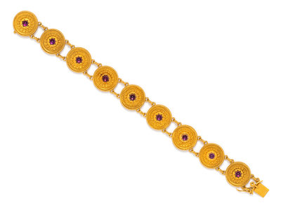 CASTELLANI, ARCHAEOLOGICAL REVIVAL, YELLOW GOLD AND AMETHYST BRACELET