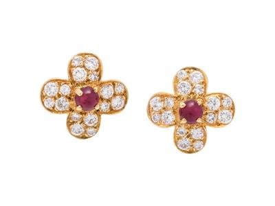 VAN CLEEF & ARPELS, RUBY AND DIAMOND 'TRÉFLE' EARCLIPS