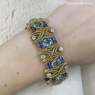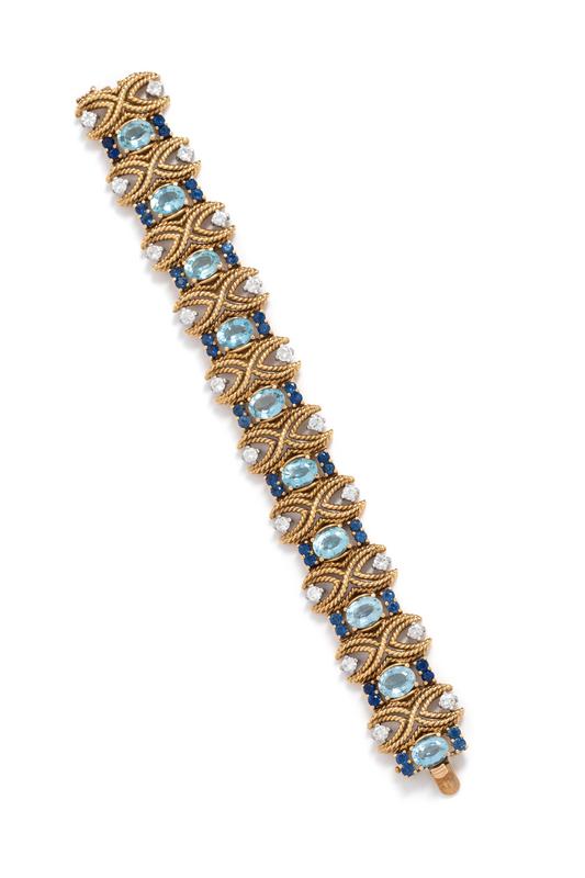 AQUAMARINE, DIAMOND AND SAPPHIRE BRACELET