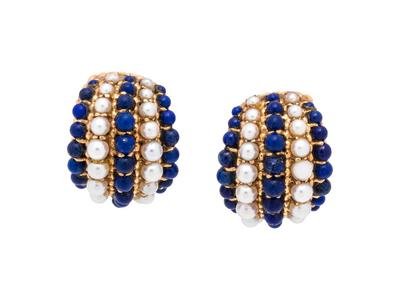 VAN CLEEF & ARPELS, LAPIS LAZULI AND CULTURED PEARL EARCLIPS