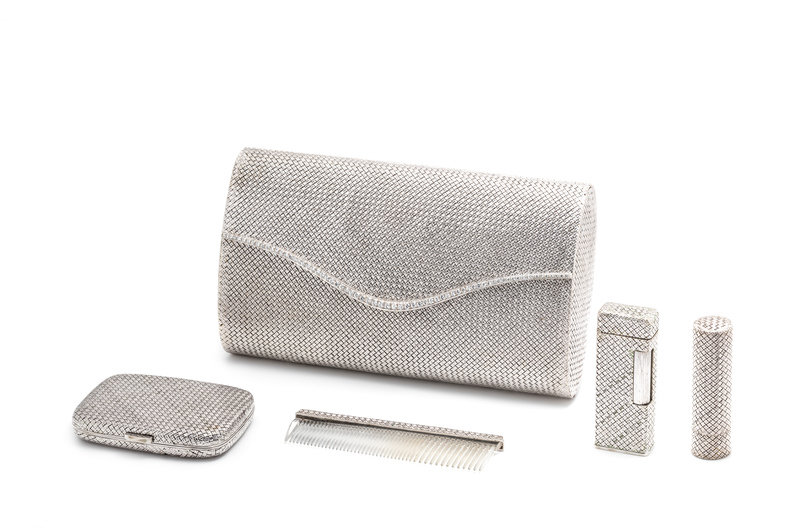 WHITE GOLD AND DIAMOND CLUTCH AND ACCESSORIES