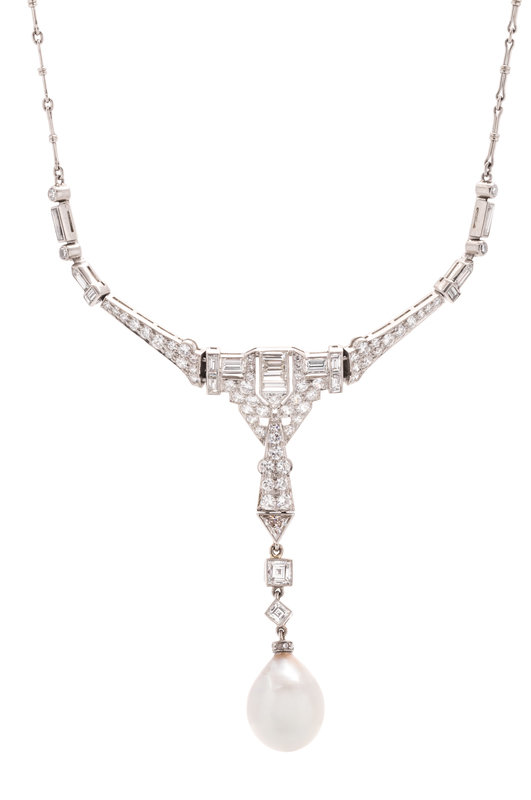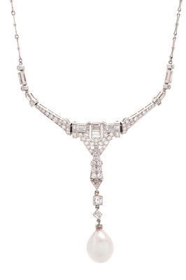TIFFANY & CO., ART DECO, DIAMOND AND NATURAL PEARL NECKLACE