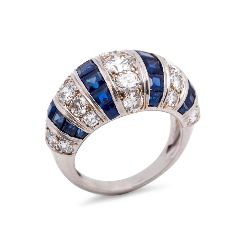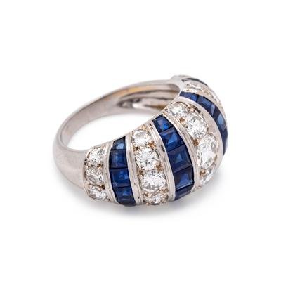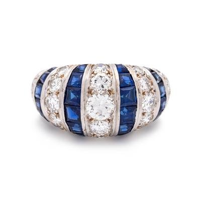 Containing 23 transitional cut diamonds weighing approximately 2.15 carats total and 24 calibre cut sapphires.