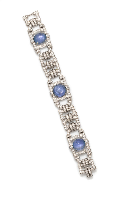 ART DECO, STAR SAPPHIRE AND DIAMOND BRACELET