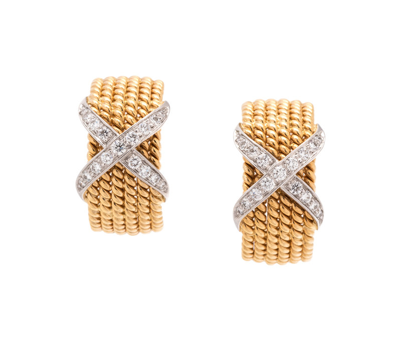 TIFFANY & CO., SCHLUMBERGER, YELLOW GOLD AND DIAMOND 'X' EARCLIPS