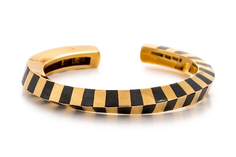 TIFFANY & CO., ANGELA CUMMINGS, YELLOW GOLD AND HEMATITE CUFF BRACELET