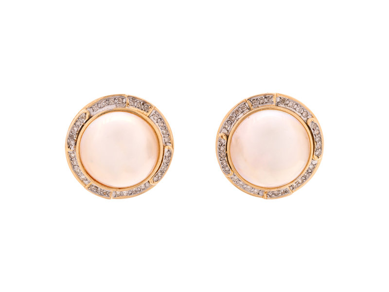 CULTURED MABE PEARL AND DIAMOND EARCLIPS