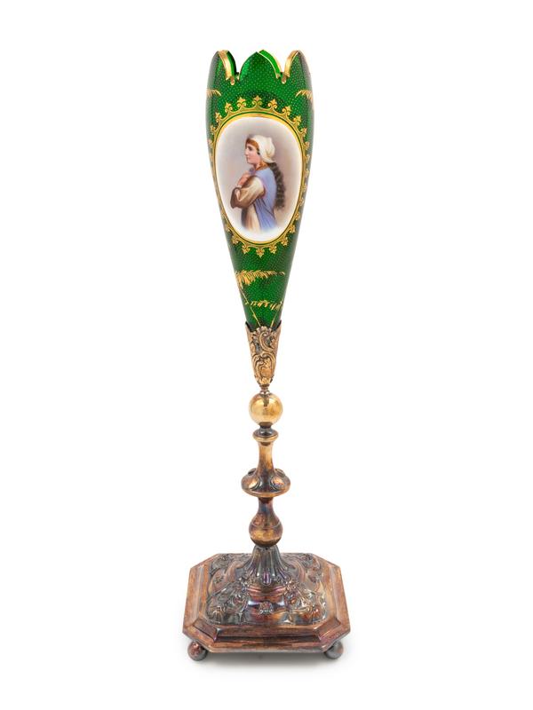 A Bohemian Enameled Glass Portrait Vase