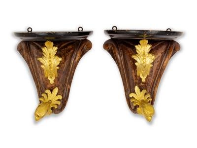 A Pair of Gilt Bronze Mounted Mahogany Wall Brackets