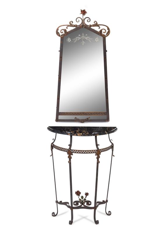 An Edgar Brandt-Style Iron Console and Mirror