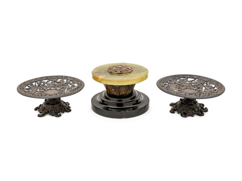 A Collection of Continental Gilt and Patinated Metal Mounted Articles