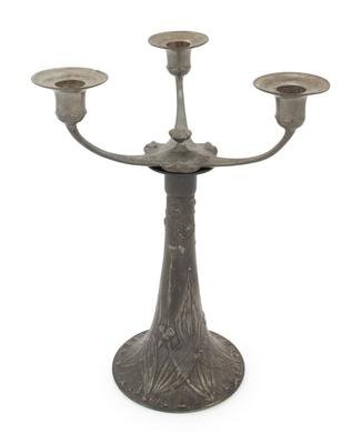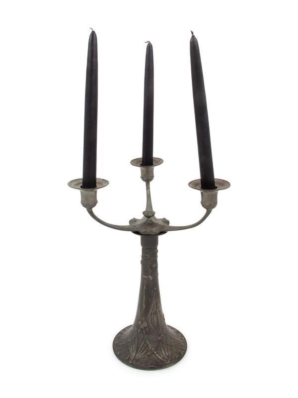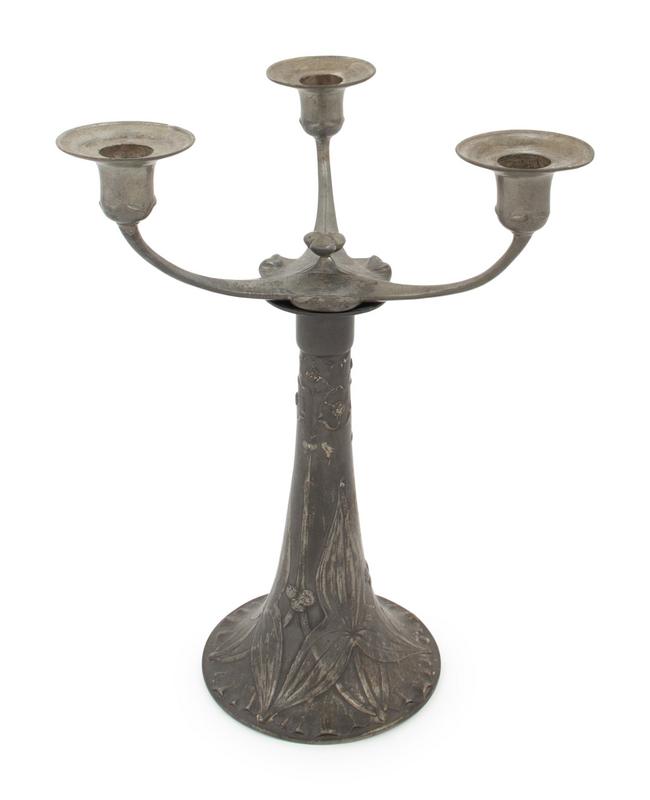 A Kayserzinn Jugenstil Pewter Three-Light Candelabrum