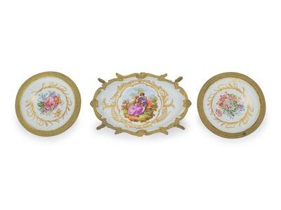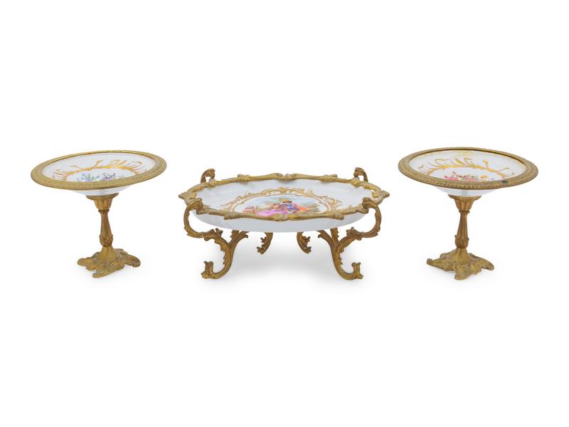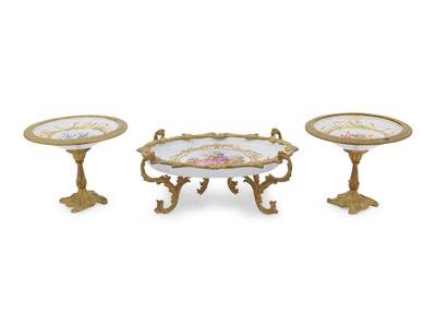 An Assembled Sevres Style Gilt Metal Mounted Porcelain Three-Piece Garniture