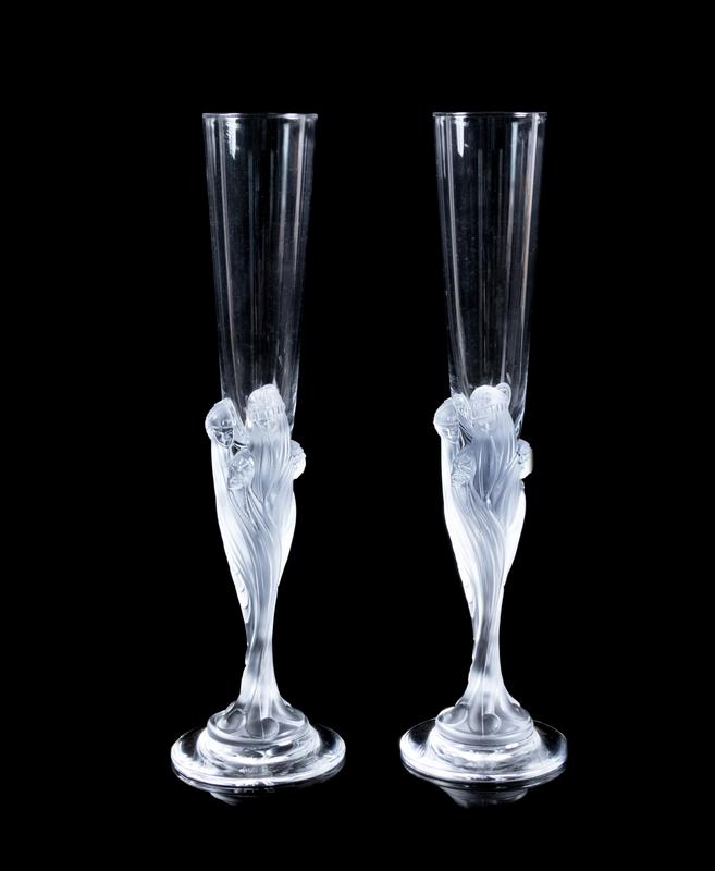 A Pair of Erté 'Mystique' Glass Champagne Flutes