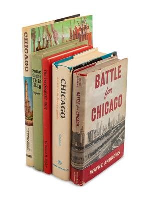 CARSEL, Wilfred. A History of the Chicago Ladies’ Garment Workers’ Union. Chicago: Normandie House, 1940. -- WAYNE, Andrews. Battle for Chicago. New York: Harcourt, Brace and Company, 1946. -- GRAHAM, Jory. Chicago. An Extraordinary Guide. Chicago: Rand McNally & Company, 1972. -- LONGSTREET, Stephen. Chicago. An Intimate Portrait of People, Pleasures, and Power: 1860-1919. New York: David McKay Company, Inc., 1973. -- FARRELL, James T. Chicago Stories. Urbana and Chicago: University of Illinois Press, 1998. -- And 21 others. Together, 26 works, condition generally fine, complete list available on request.