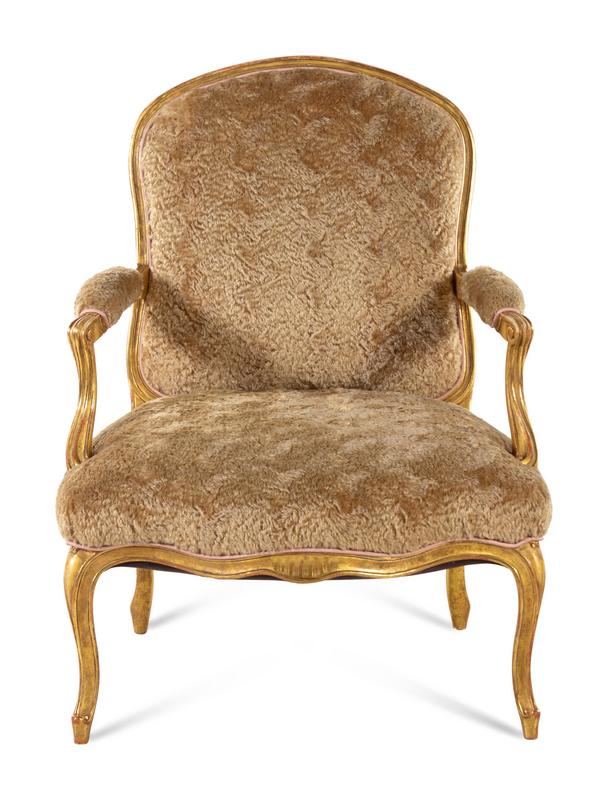 A Louis XV Style Giltwood Fauteuil