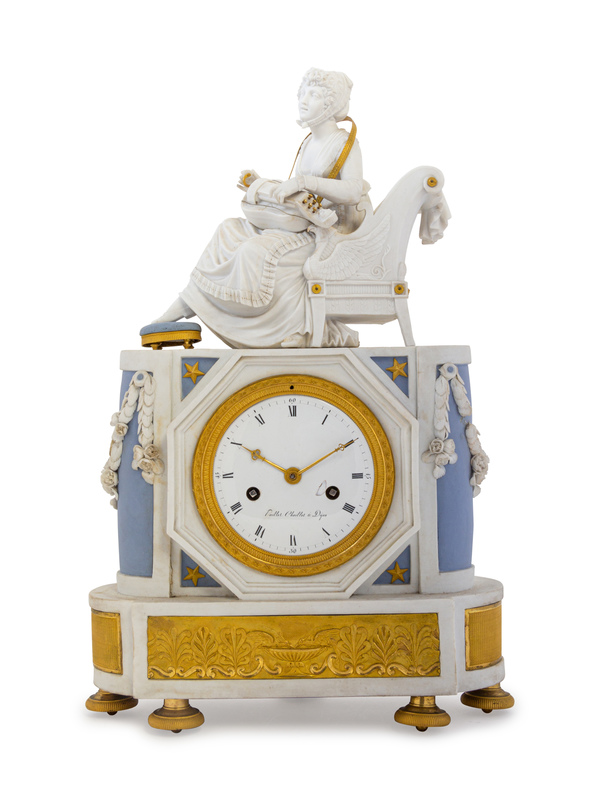 An Empire Style Gilt Metal Mounted Bisque Porcelain Mantel Clock
