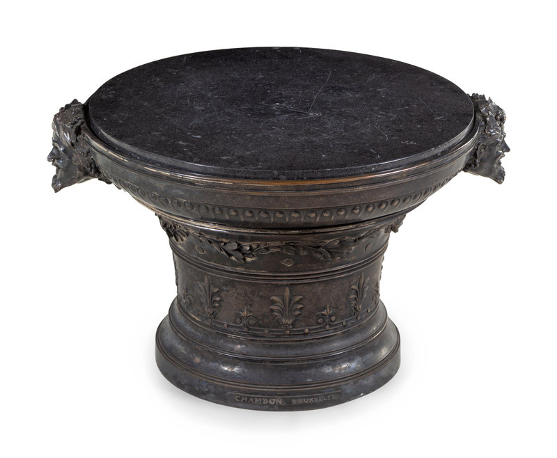 A Neoclassical Style Bronze and Marble Pedestal Table