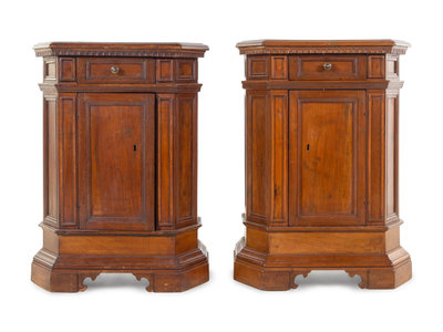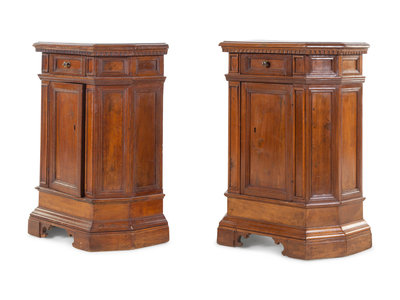 A Pair of North Italian Carved and Paneled Walnut Cabinets