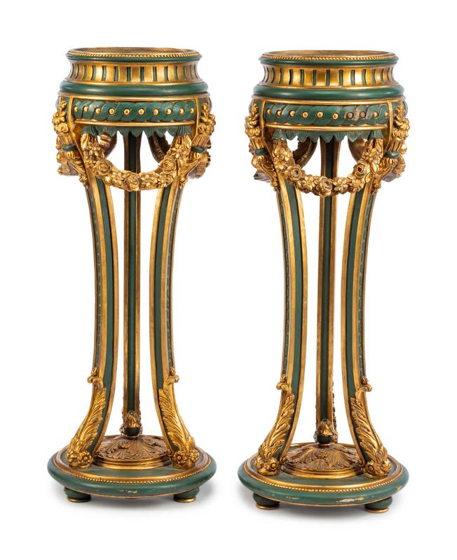 A Pair of Venetian Style Painted and Parcel Gilt Jardinières