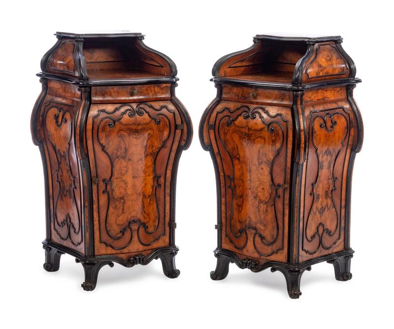 A Pair of Italian Parcel Ebonized Burlwood Side Cabinets
