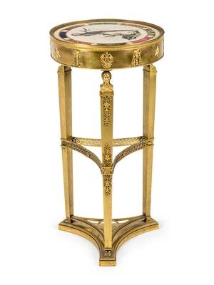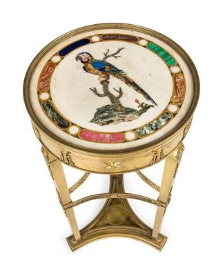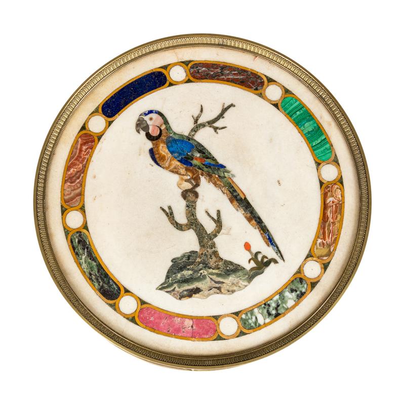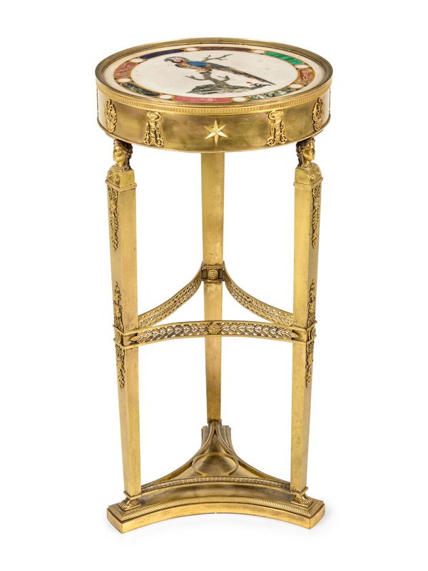An Italian Neoclassical Gilt Metal and Pietra Dura Inset Table