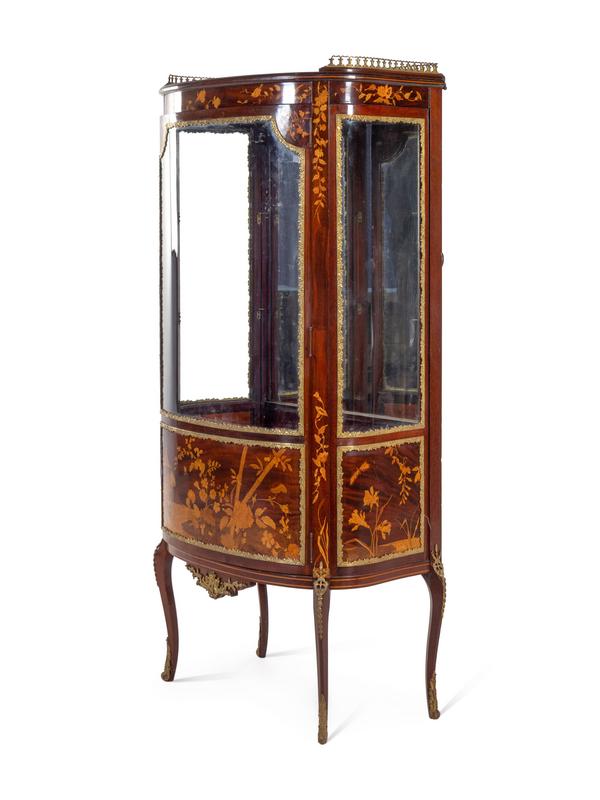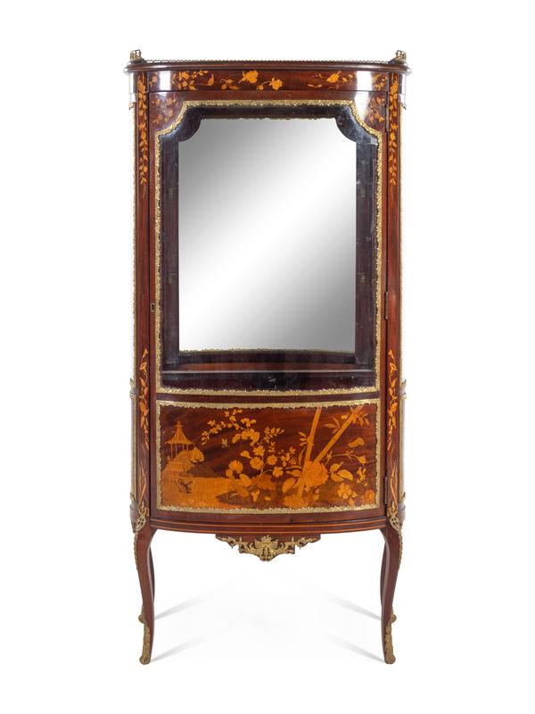 A Louis XV Style Gilt Metal Mounted Marquetry Vitrine