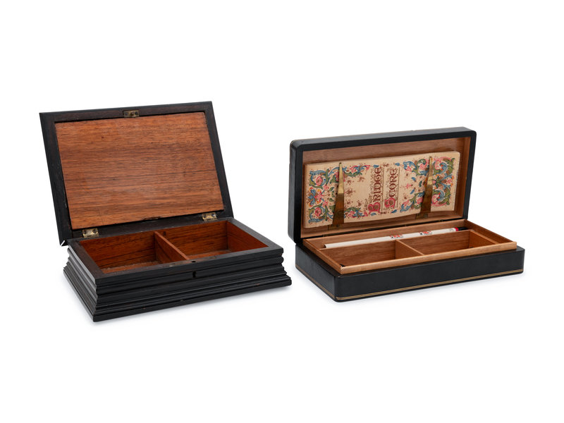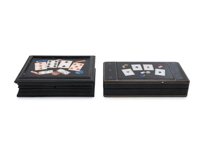 A Pair of Ebonized Pietra Dura Bridge Boxes