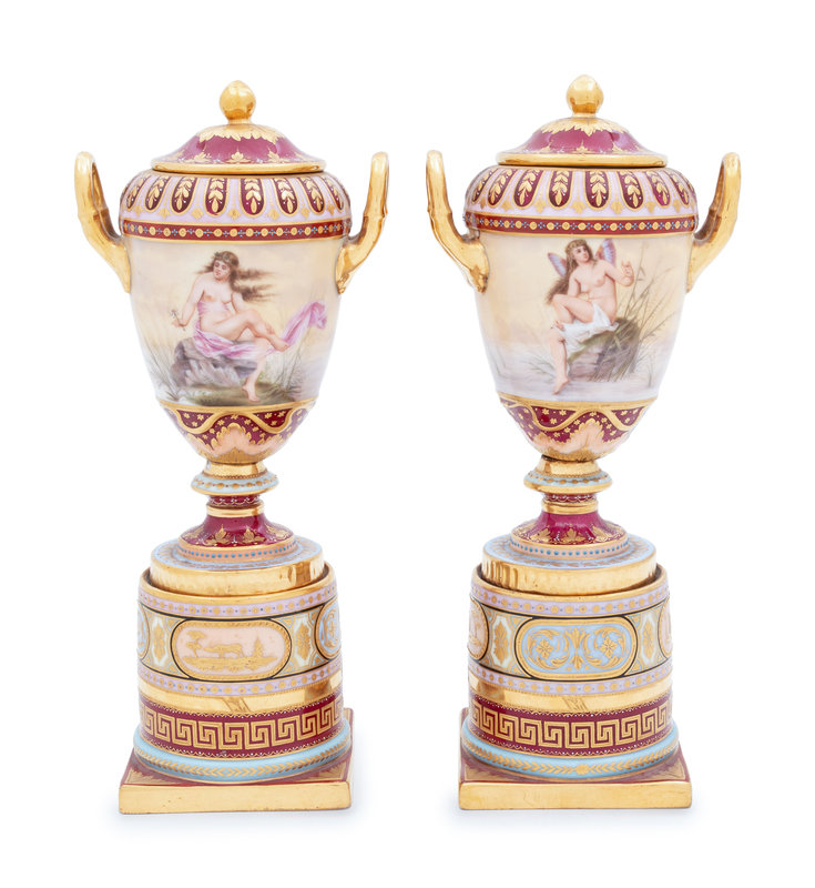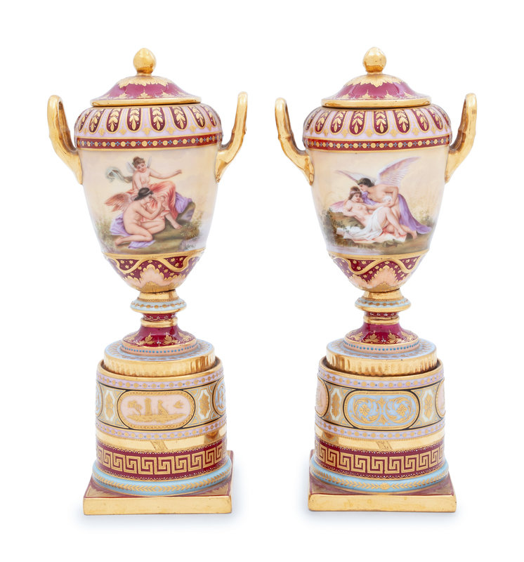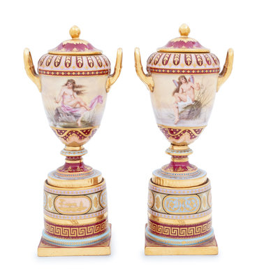 A Pair of Vienna Porcelain Covered Urns