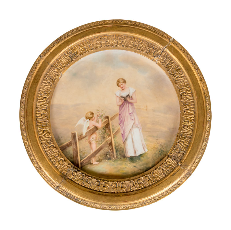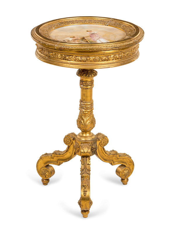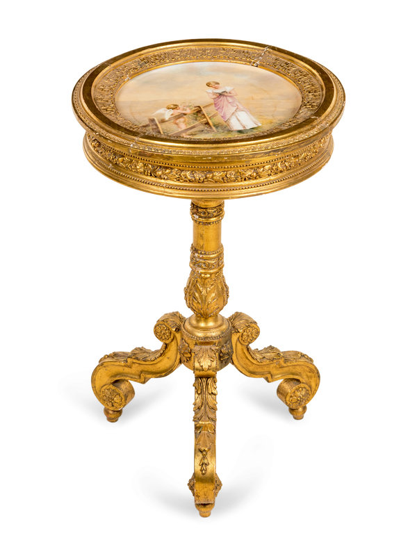 A Vienna Porcelain Inset Giltwood Table