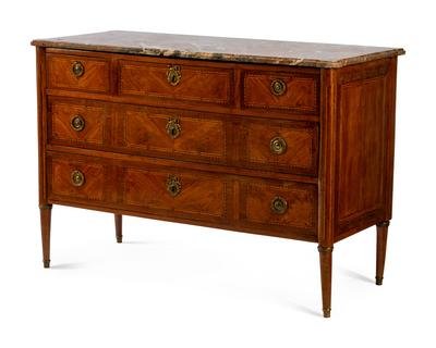 A Louis XVI Style Tulipwood and Marquetry Commode