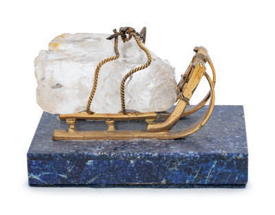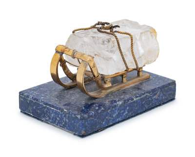 A Russian Gilt Bronze, Lapis Lazuli and Rock Crystal Table Ornament