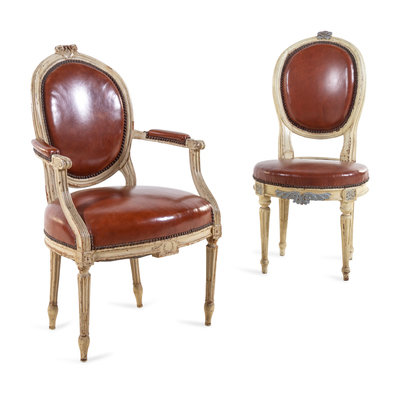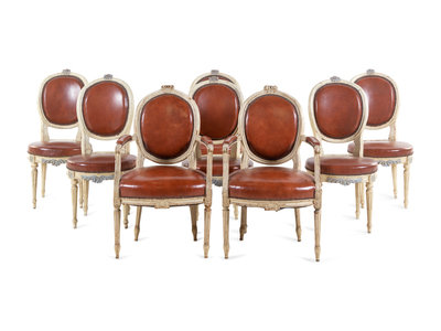 An Assembled Set of Eight Gustavian Cream-Painted Dining Chairs