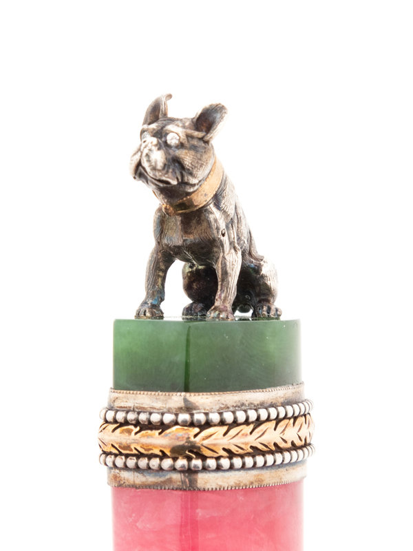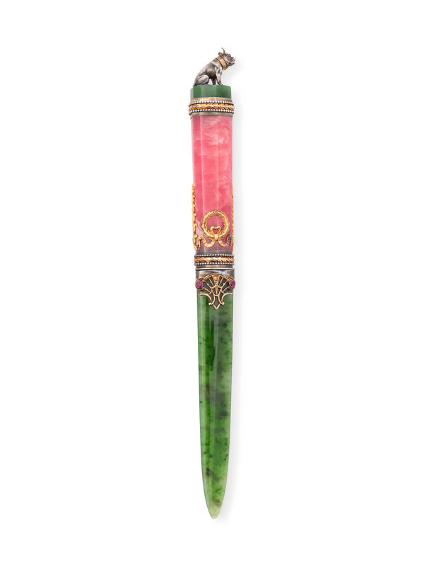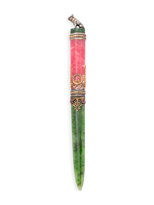 A Russian Gold and Gemstone Mounted Hardstone Letter Opener