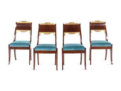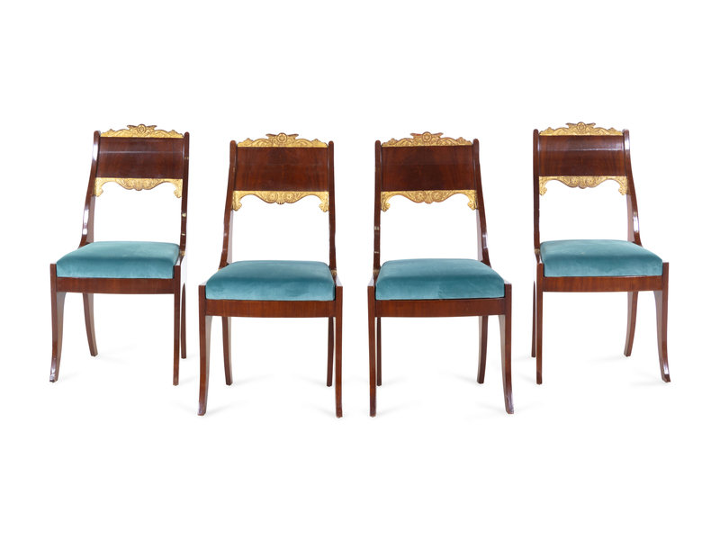 A Set of Four Russian Parcel Gilt Side Chairs