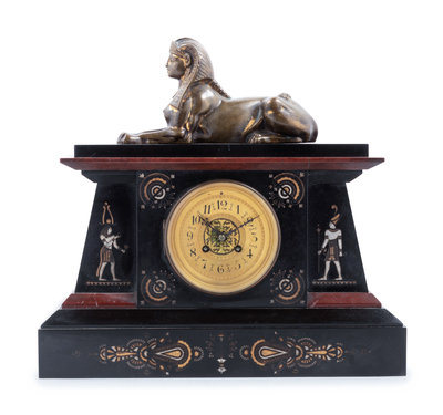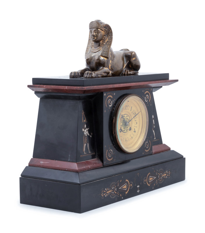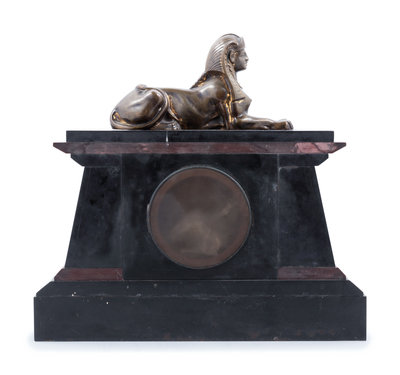 An Egyptian Revival Bronze Mounted and Parcel Gilt Mantel Clock
