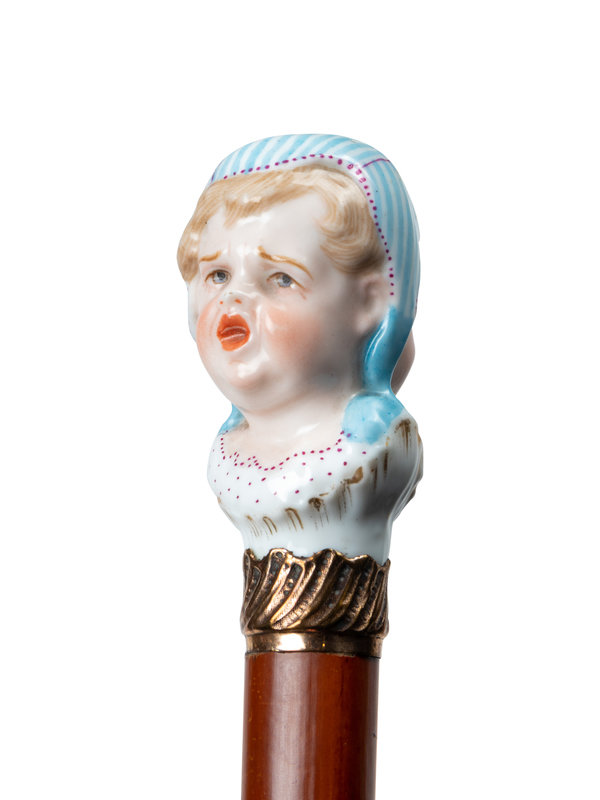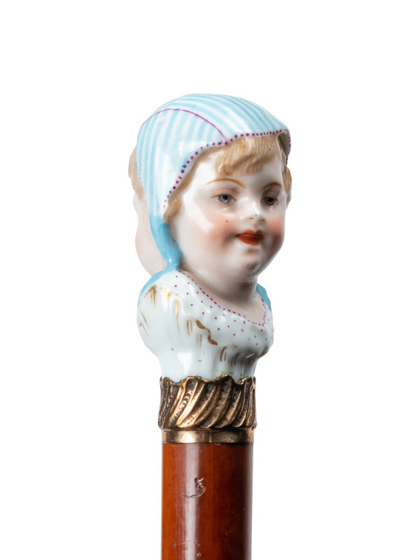 A French Figural Porcelain and Gilt Metal Mounted Cane