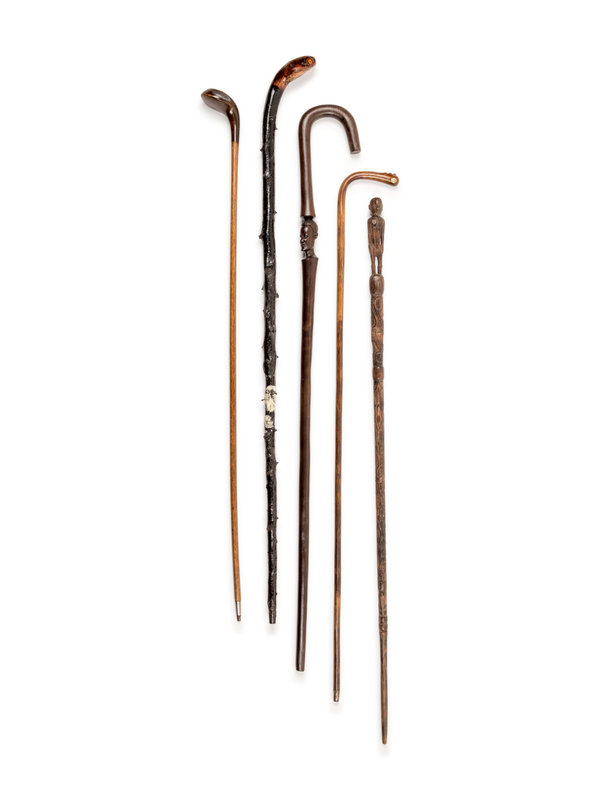 comprising one in the form of a golf club, one with a figural handle and three crook canes.