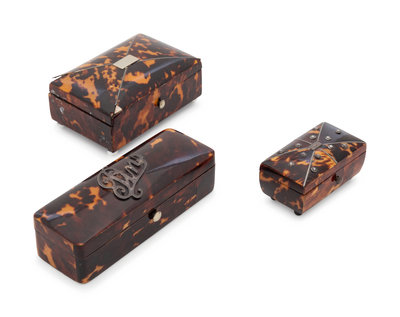 Three English Tortoise Shell Veneered Boxes