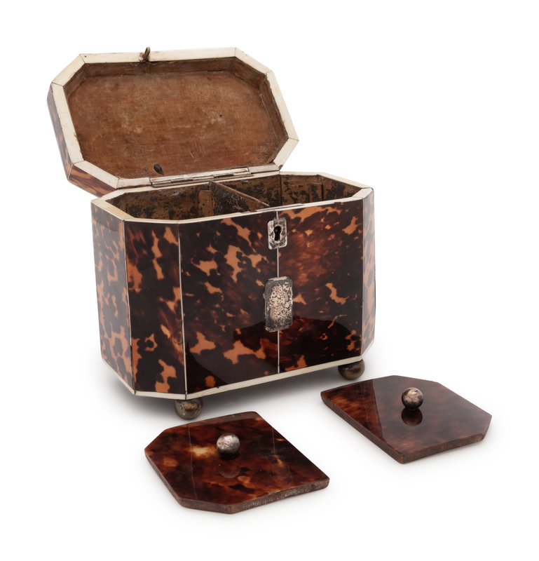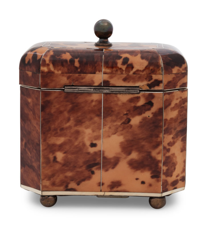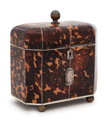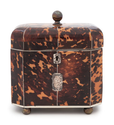 A Regency Tortoise Shell Veneered and Silver-Lined Tea Caddy