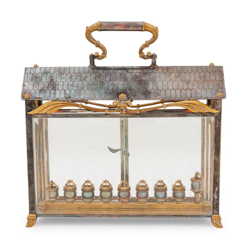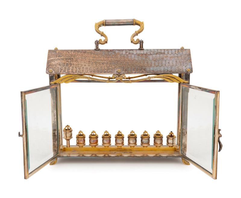A Yossi Swed Silver, Silver-Gilt and Glass Menorah