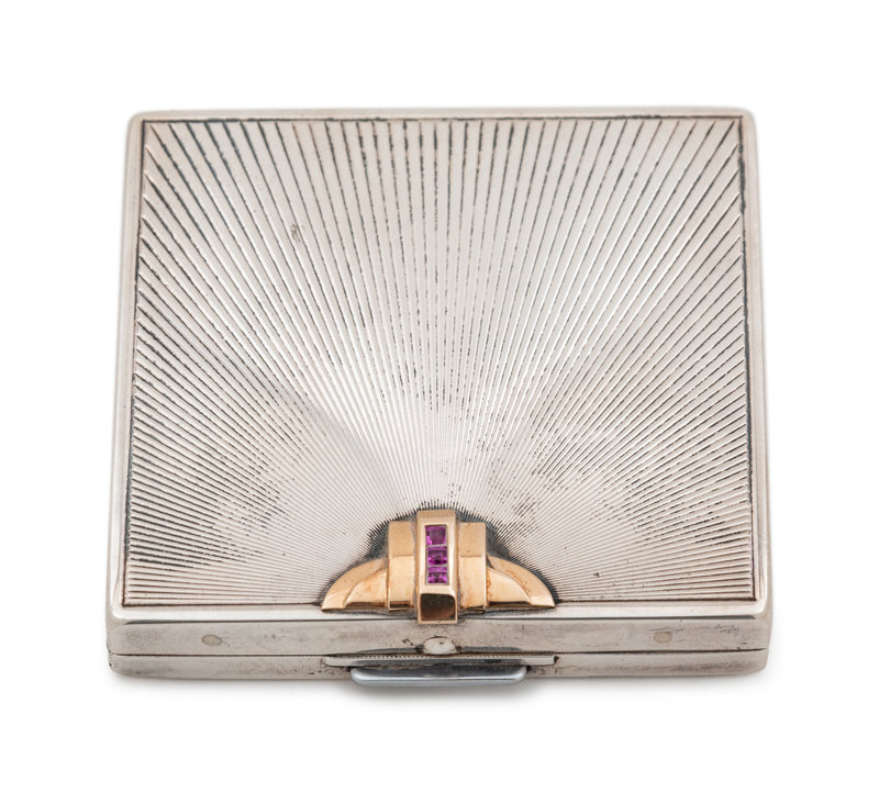 A Tiffany & Co. Silver, 14-Karat Gold and Gemstone-Inset Compact
