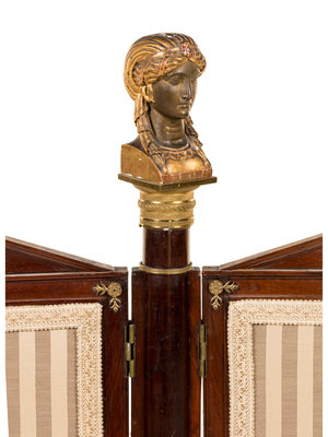 An Empire Gilt Bronze Mounted Mahogany Folding Floor Screen