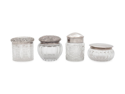 Four Silver Mounted Cut Glass Dresser Jars