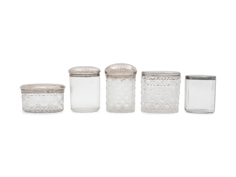 Five English Silver Mounted Cut Glass Jars