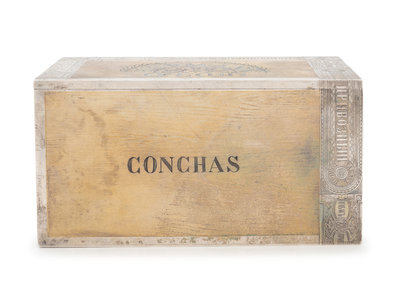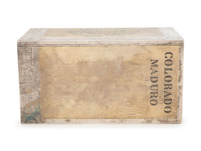 the exterior decorated on all sides to resemble a wood cigar box, the lid interior with a presentation inscription dated for 1872.