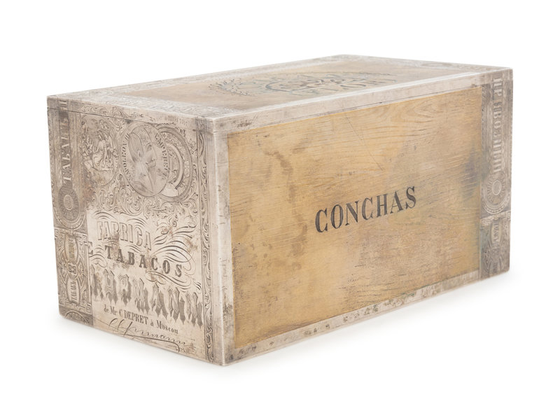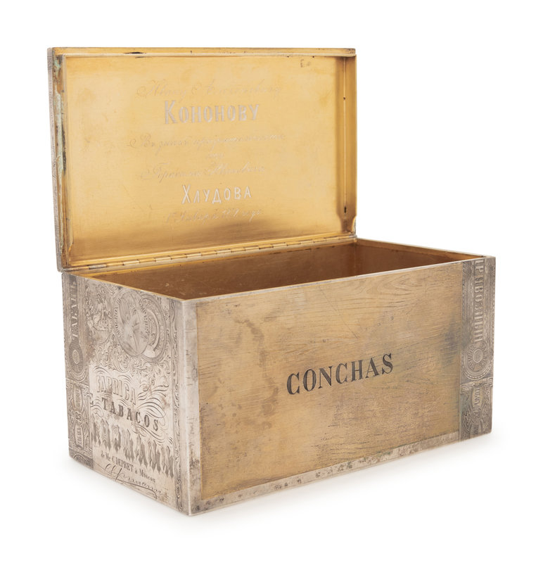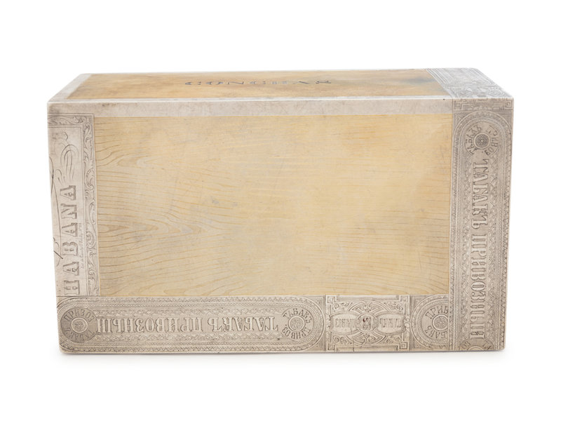 A Large Russian Silver-Gilt Trompe l'Oeil Cigar Box
