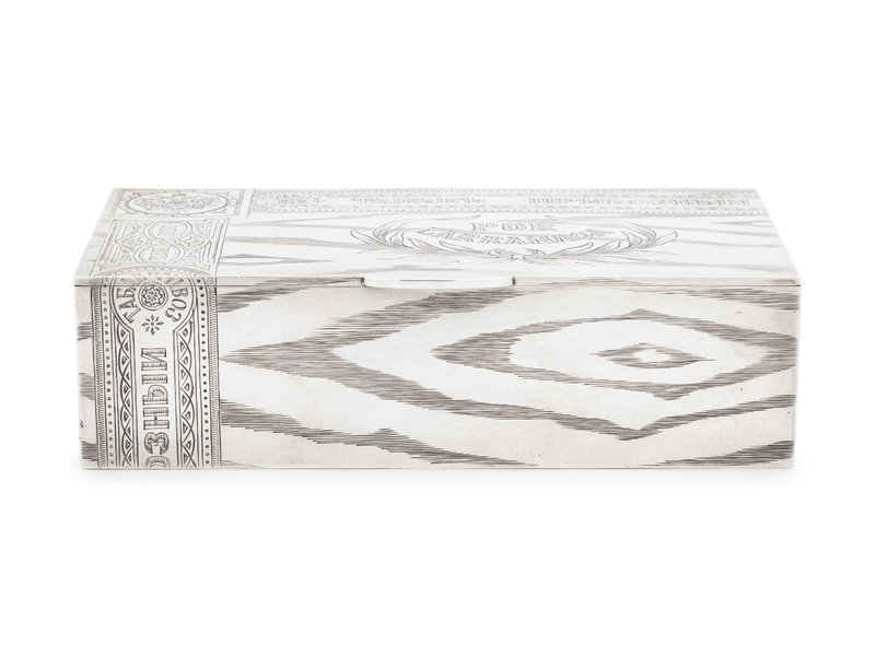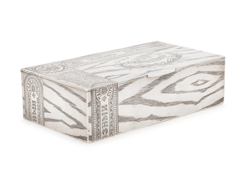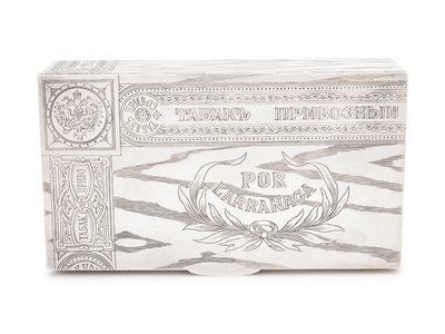 A Russian Silver Trompe l'Oeil Cigar Box