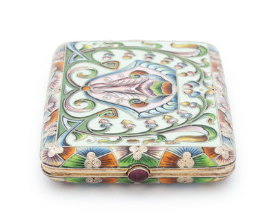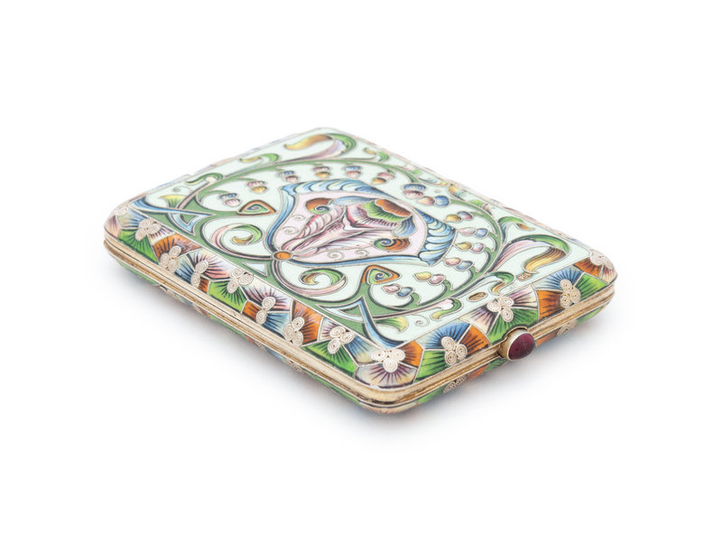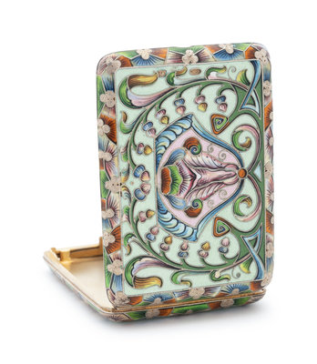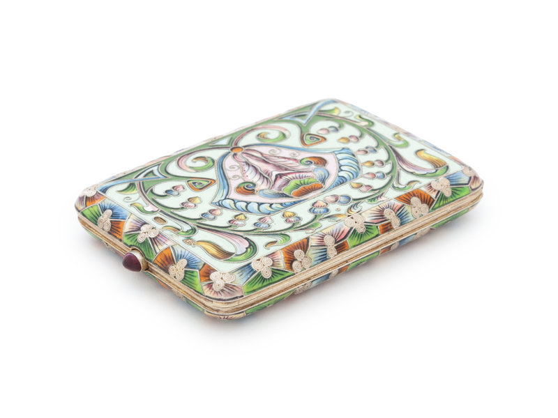 A Russian Silver and Shaded Enamel Cigarette Case