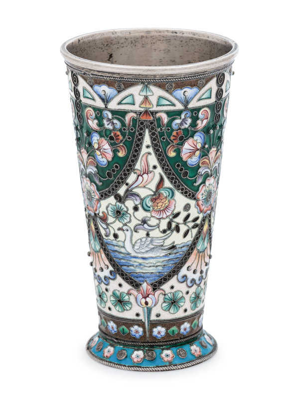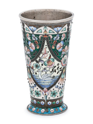 A Russian Silver and Shaded Enamel Beaker